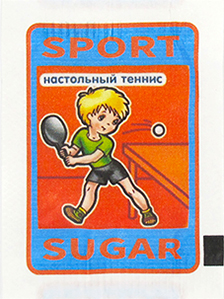 выпуск №1Описание: Пакетики сахара с изображением различных видов спорта. (Выпуск №1). Серия: 12 картинокАртикул: 110171Размер пакетика: 50 х 68 мм