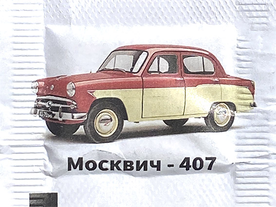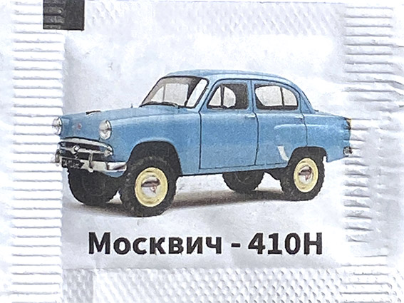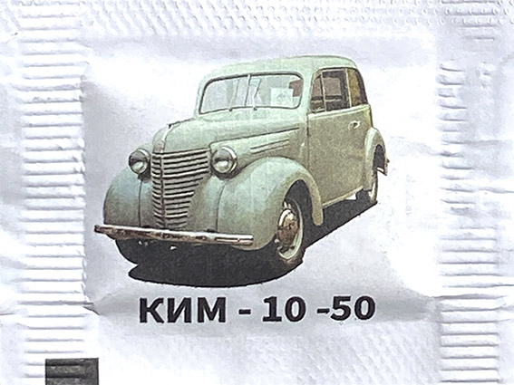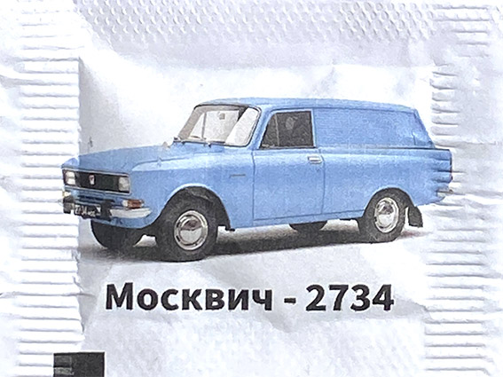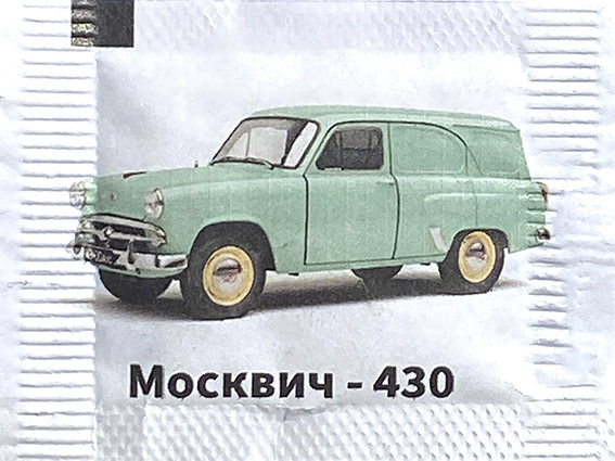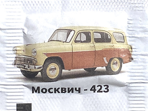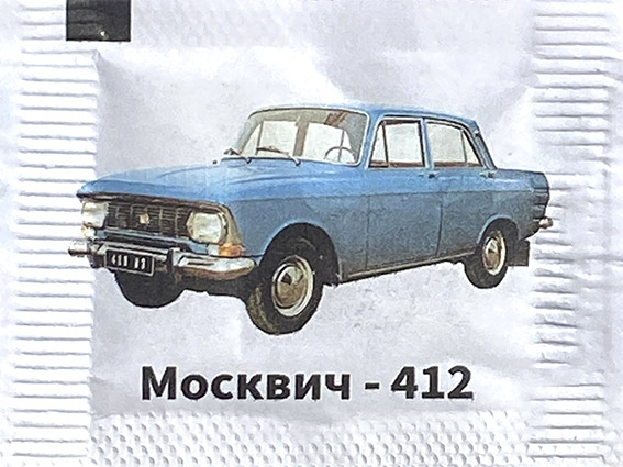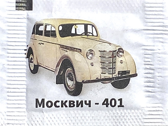 выпуск №1 Описание: Пакетики с сахаром с изображением автомобилей автозавода им. Ленинского Комсомола "Москвич". Серия: 16